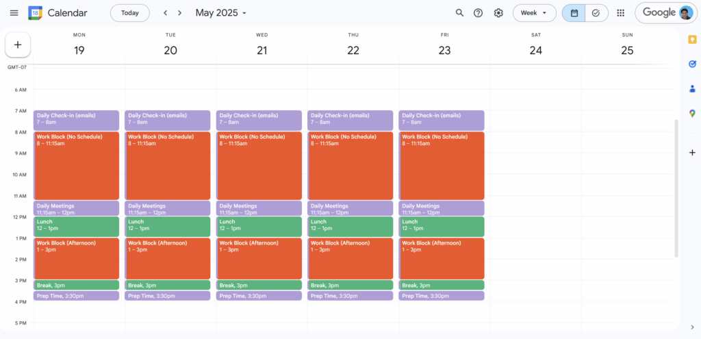 As someone who works with a flexible schedule, I’ve found energy-based blocking to be particularly effective. I pay attention to when my body naturally feels more productive or when my dopamine levels seem higher for tackling challenging work. During these peak energy windows, I schedule my most important creative and strategic tasks. Then I save routine emails, administrative work, and simpler tasks for times when my energy naturally dips. This method has helped me work with my body’s natural rhythms rather than fighting against them.